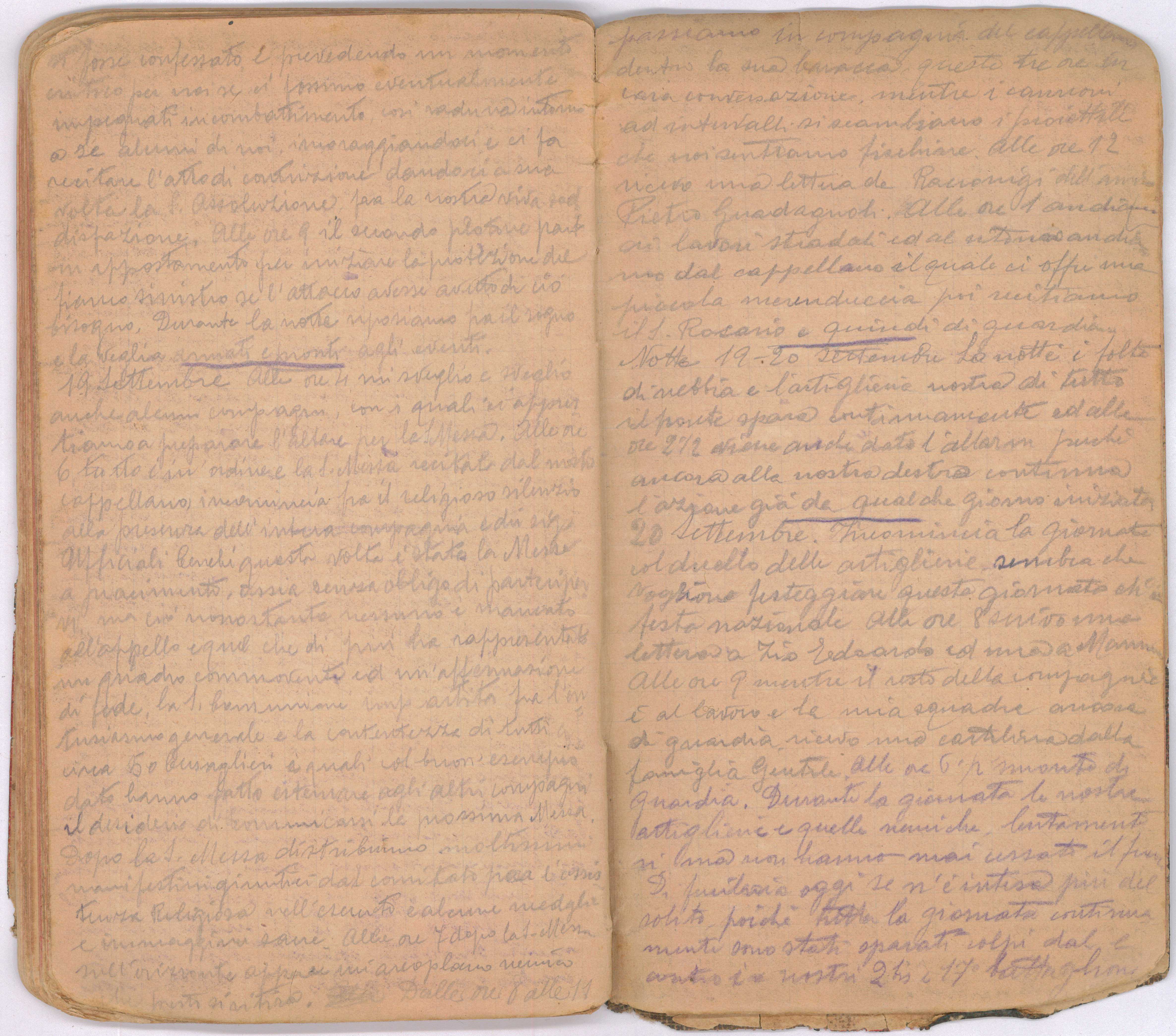 La notte è folta di nebbia e l’artiglieria nostra di tutto il fronte spara continuamente ed alle ore 2 ½ viene anche dato l’allarm perché ancora alla nostra destra continua l’azione già da qualche giorno iniziata.