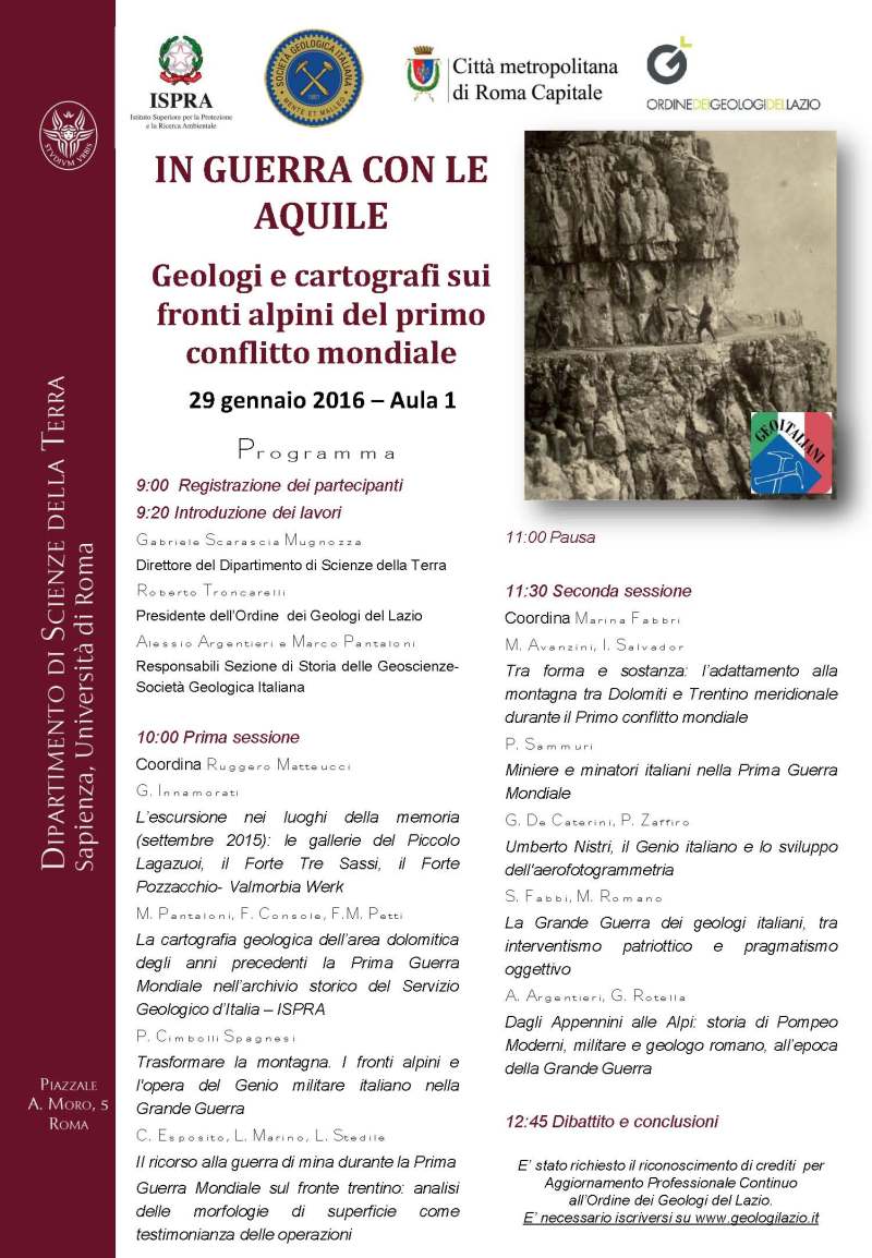 Venerdì 29 gennaio, presso il Dipartimento di Scienze della Terra de “La Sapienza” Università di Roma, si è tenuto il convegno “In guerra con le aquile”.