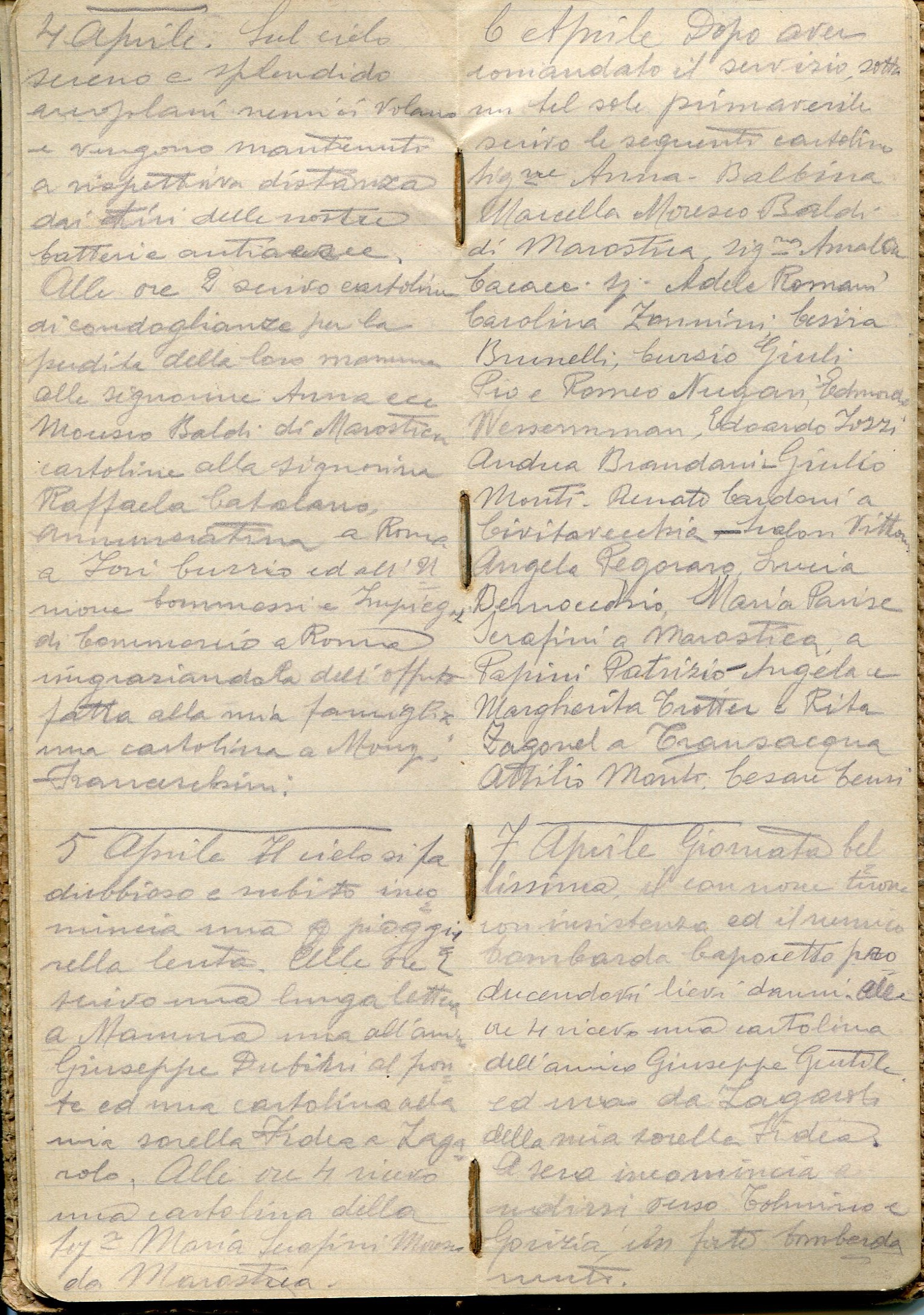Giornata bellissima, il cannone tuona con insistenza ed il nemico bombarda Caporetto producendo lievi danni. Alle ore 4 ricevo una cartolina dall’amico Giuseppe Gentile ed una da Zagarolo dalla mia sorella Fidea. A sera incomincia ad udirsi verso Tolmino e Gorizia un forte bombardamento.