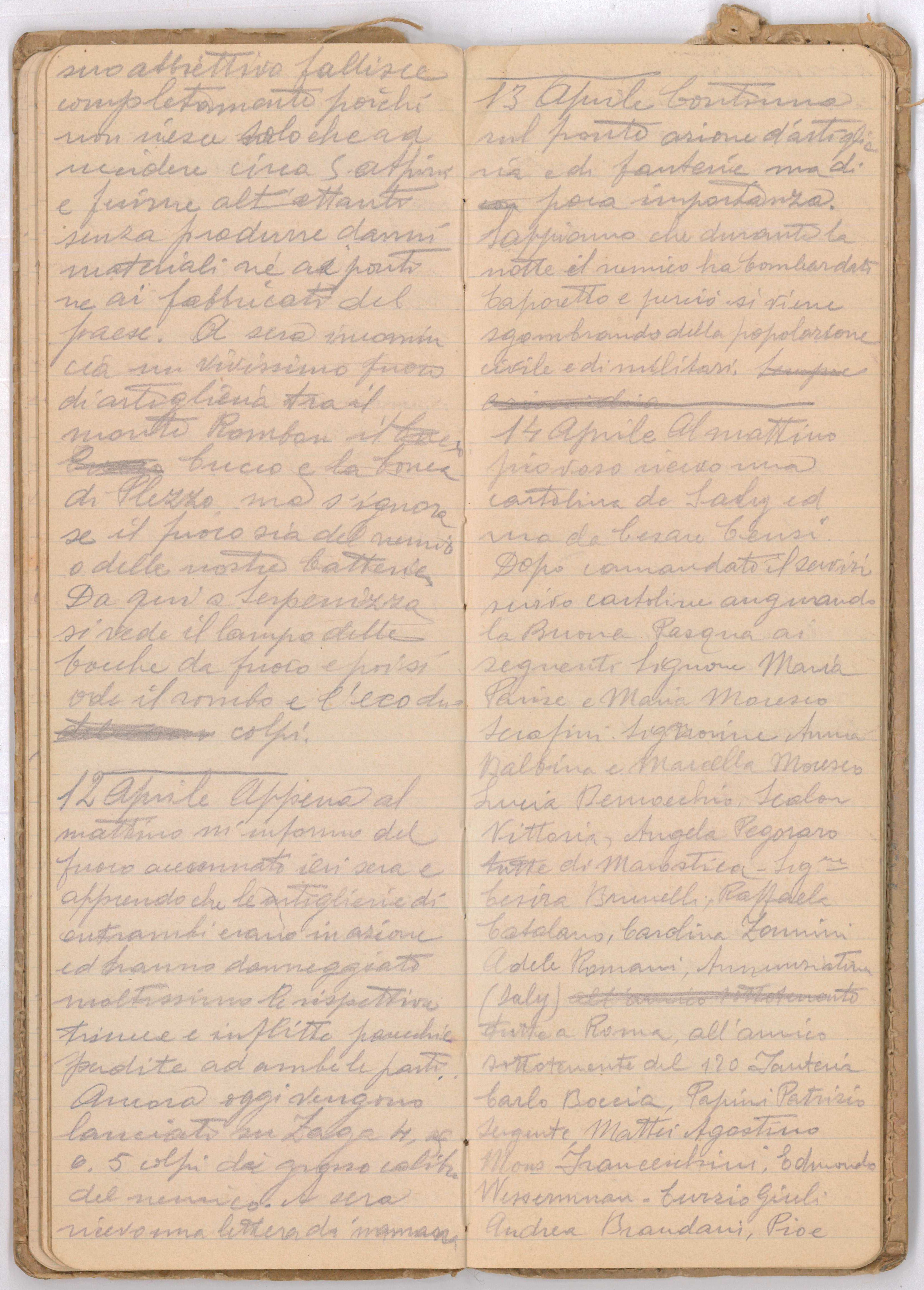 13 aprile 1916 “durante la notte il nemico ha bombardato Caporetto”