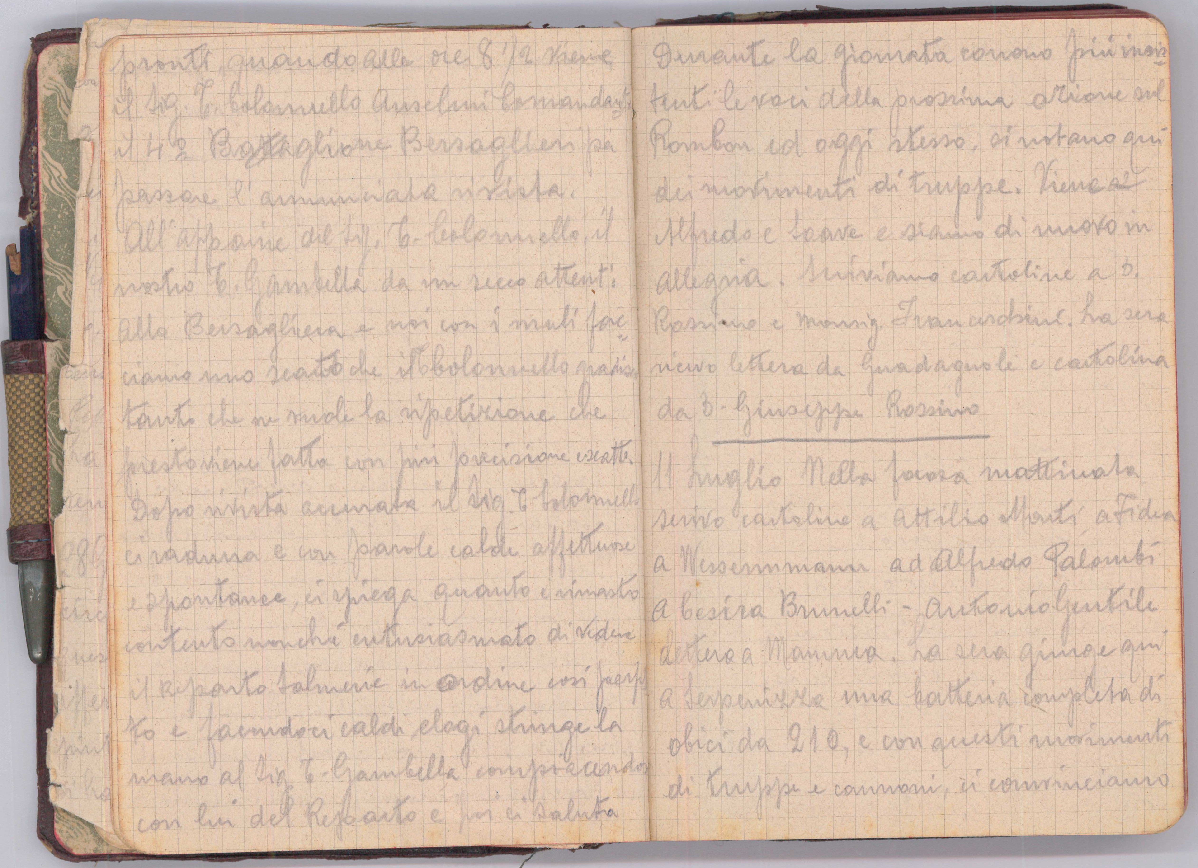 Nella focosa mattinata scrivo cartoline a Attilio Monti a Fidea a Wessermann ad Alfredo Palombi a Cesira Brunelli. La sera giunge qui a Serpenizza una batteria completa di obici da 210, e con questi movimenti di truppe e cannoni ci convinciamo sempre più della prossima azione sul Rombon.