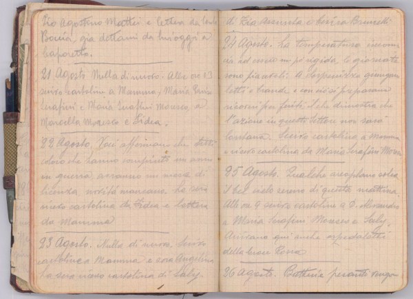 Nulla di nuovo. Alle ore 13 scrivo cartolina a Mamma, Maria Parise Serafini e Maria Serafini Moresco, a Marcella Moresco e Fidea.