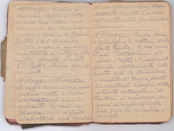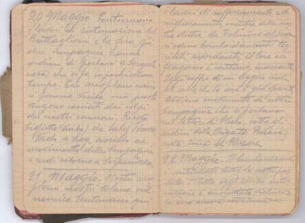 Nostri areoplani nostri volano sul nemico. Continuano qui i lavori di rafforzamento e di miglioramento, mentre alla nostra destra da Tolmino al mare si odono bombardamenti terribili assordanti, il loro…