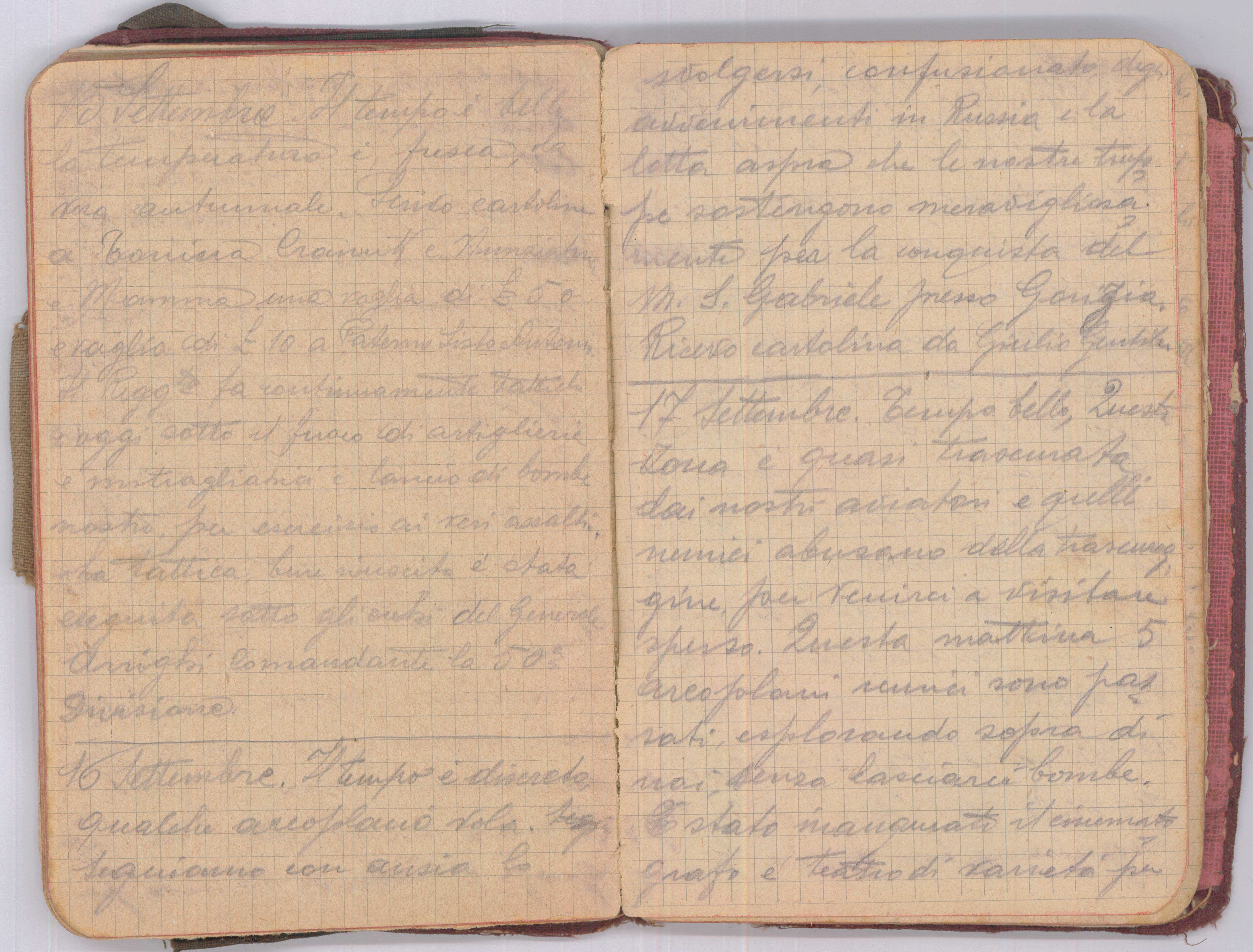 Tempo bello. Questa zona è quasi trascurata dai nostri aviatori e quelli nemici abusano della trascuraggine per venirci a visitare spesso. Questa mattina 5 aeroplani nemici sono passati, esplorando sopra di noi, senza lanciare bombe. E’ stato inaugurato il cinematografo ed il teatro di varietà per lo svago delle truppe che scendono a Serpenizza per il riposo.