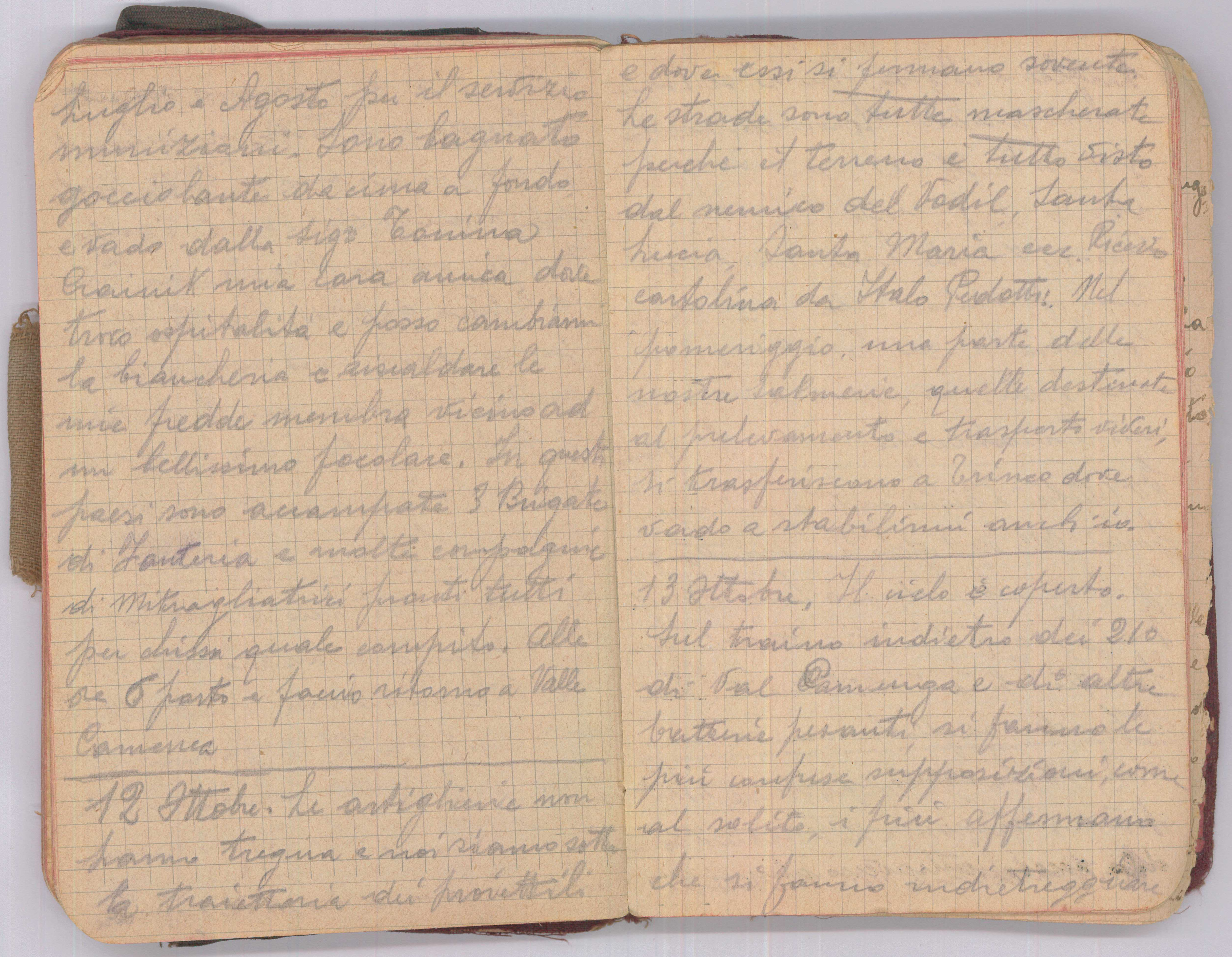Le artiglierie non hanno tregua e noi siamo sotto la traiettoria dei proiettili e dove essi si fermano sovente. Le strade sono tutte mascherate perché il terreno è tutto visto dal nemico del Vadil, Santa Lucia, Santa Maria ecc. Ricevo cartolina da Italo Pedatti. Nel pomeriggio una parte delle nostre salmerie, quelle destinate al prelevamento e trasporto viveri, si trasferiscono a Trinco dove vado a stabilirmi anch’io.