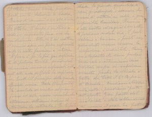 Il tempo è nebbioso e cade un’acquarella fina ma che non disturba. Alle ore 2 del mattino il nemico apre un fuoco infernale contro le nostre posizioni e retrovie. Il fuoco è per lo più gas asfissiante di potenza terribile, quadrupedi ed uomini muoiono asfissiati mentre agli altri resta difficile la respirazione. Questo è il principio della grande offensiva nemica. Data l’impossibilità in assoluto di resistere al grande fuoco ed alle masse nemiche che attaccano, abbiamo ordine di iniziare la ritirata. Per le poche strade, la grande quantità di carri, quadrupedi e uomini che cercano di mettersi in salvo, è quasi impossibile transitare. Il nemico è alle nostre calcagna e noi a stento possiamo andare via. I ponti saltano e bruciano, i feriti sanguinolenti cercano soccorso, la confusione è indicibile. Passiamo a Caporetto che viene presto abbandonata e continuiamo verso Cividale sempre con confusione crescente perché la ritirata è fatta da tutto il 4° Corpo d’Armata. Arriviamo a Cividale nella notte e prendiamo posto all’aperto. Gran parte del materiale è stato abbandonato al nemico il quale ha potuto fare bottino anche di prigionieri. Il mio reggimento è stato soffocato dopo accanita lotta e soli superstiti siamo circa 200 uomini con quasi tutti i quadrupedi e parte delle carrette, altri reggimenti del Corpo d’Armata sono stati annientati. Descrivere con precisione e larghezza ogni fase dell’avanzata nemica e della nostra ritirata è cosa impossibile a chi come me, testimone, ha provato quelle emozioni.