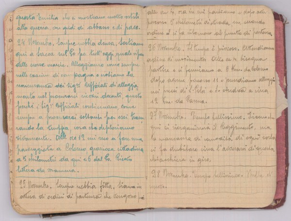 Tempo coperto. Oggi qui il popolo festeggia S. Andrea protettore di questa borgata omonima. Incomincia il lavoro di riordinamento del Reggimento e presto inizieremo quella vita che non è guerresca…