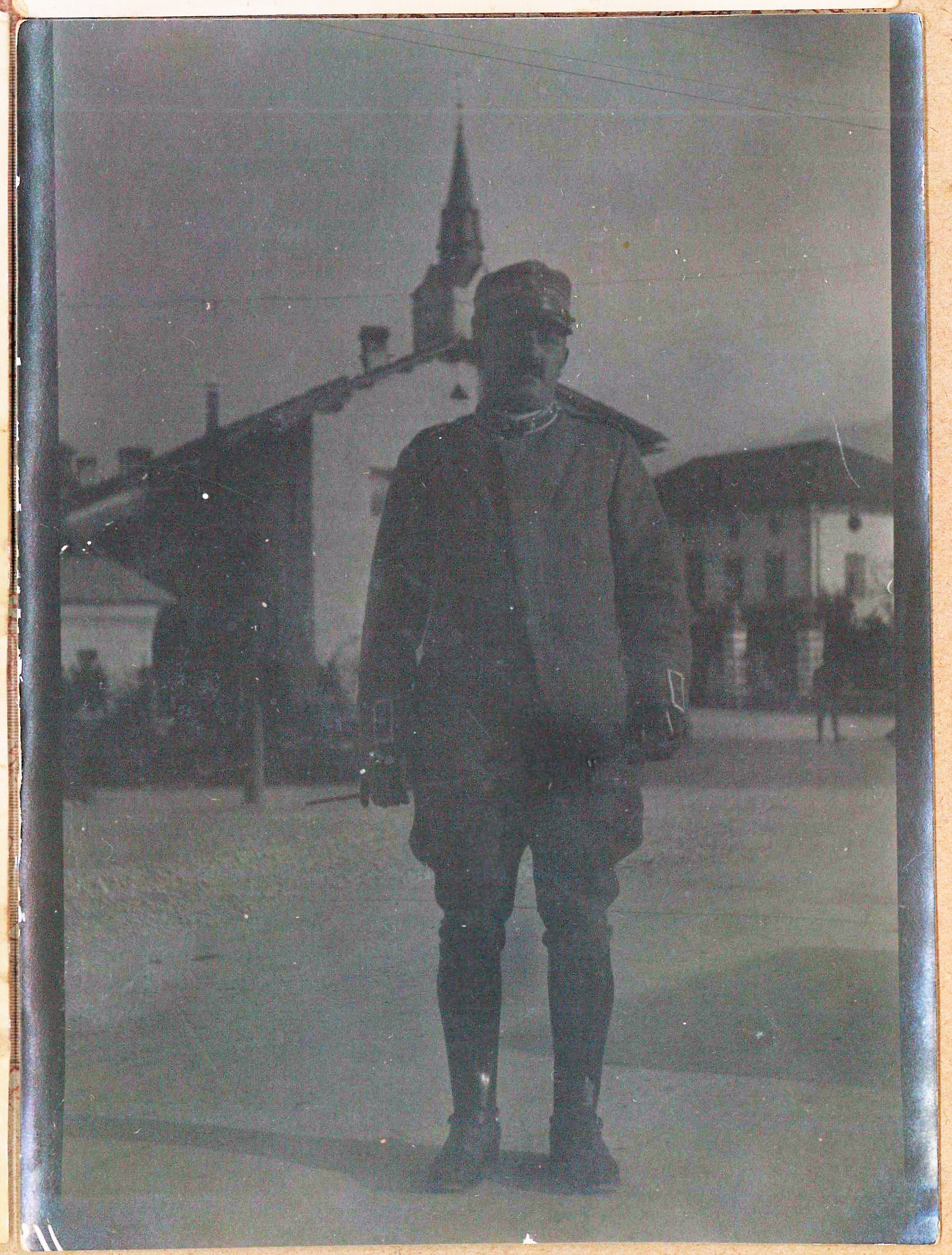 Siamo a Caporetto, come si può intuire dal campanile sullo sfondo che possiamo confrontare con l’immagine pubblicata qui.