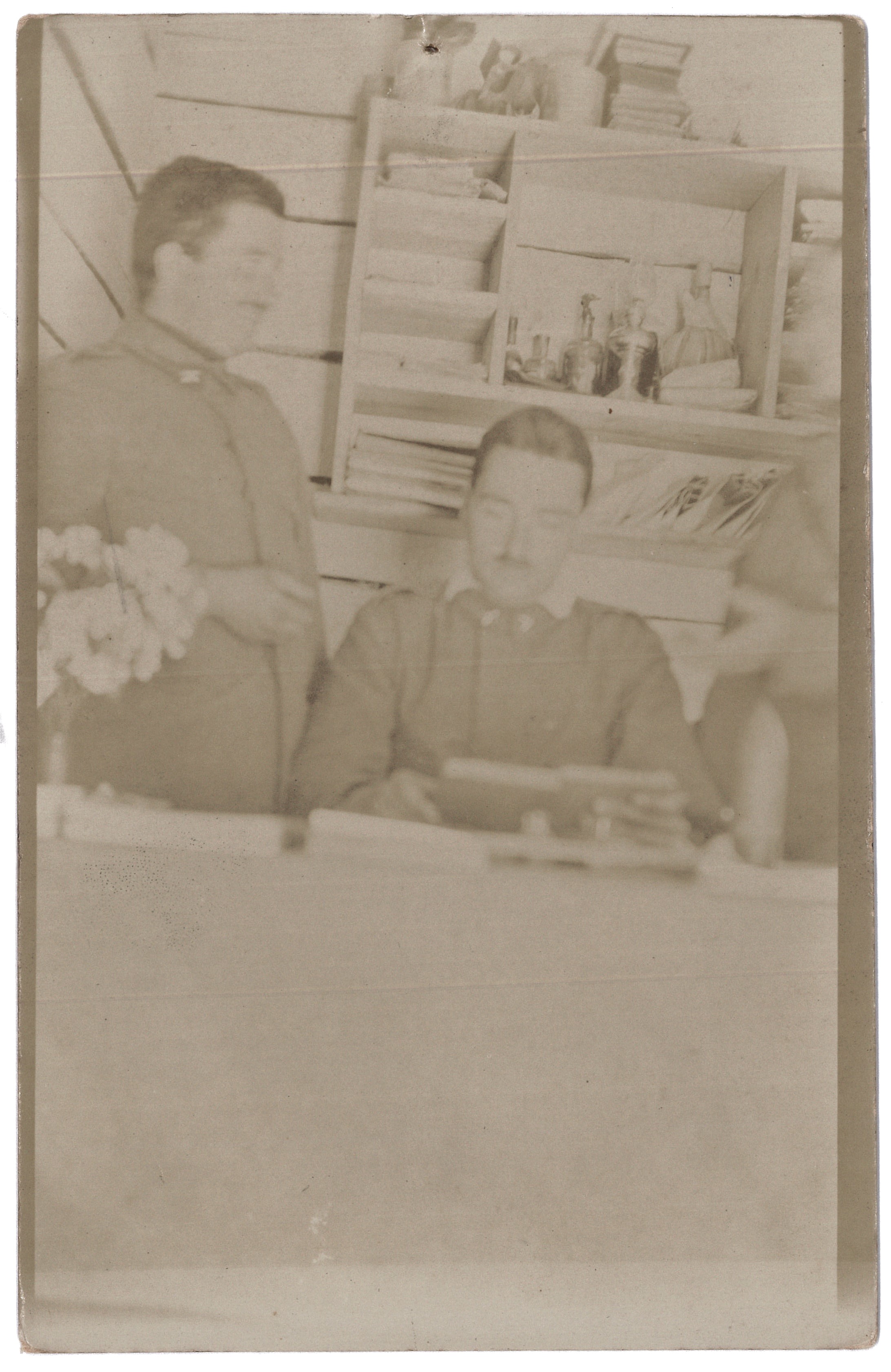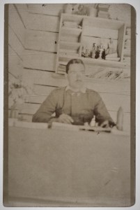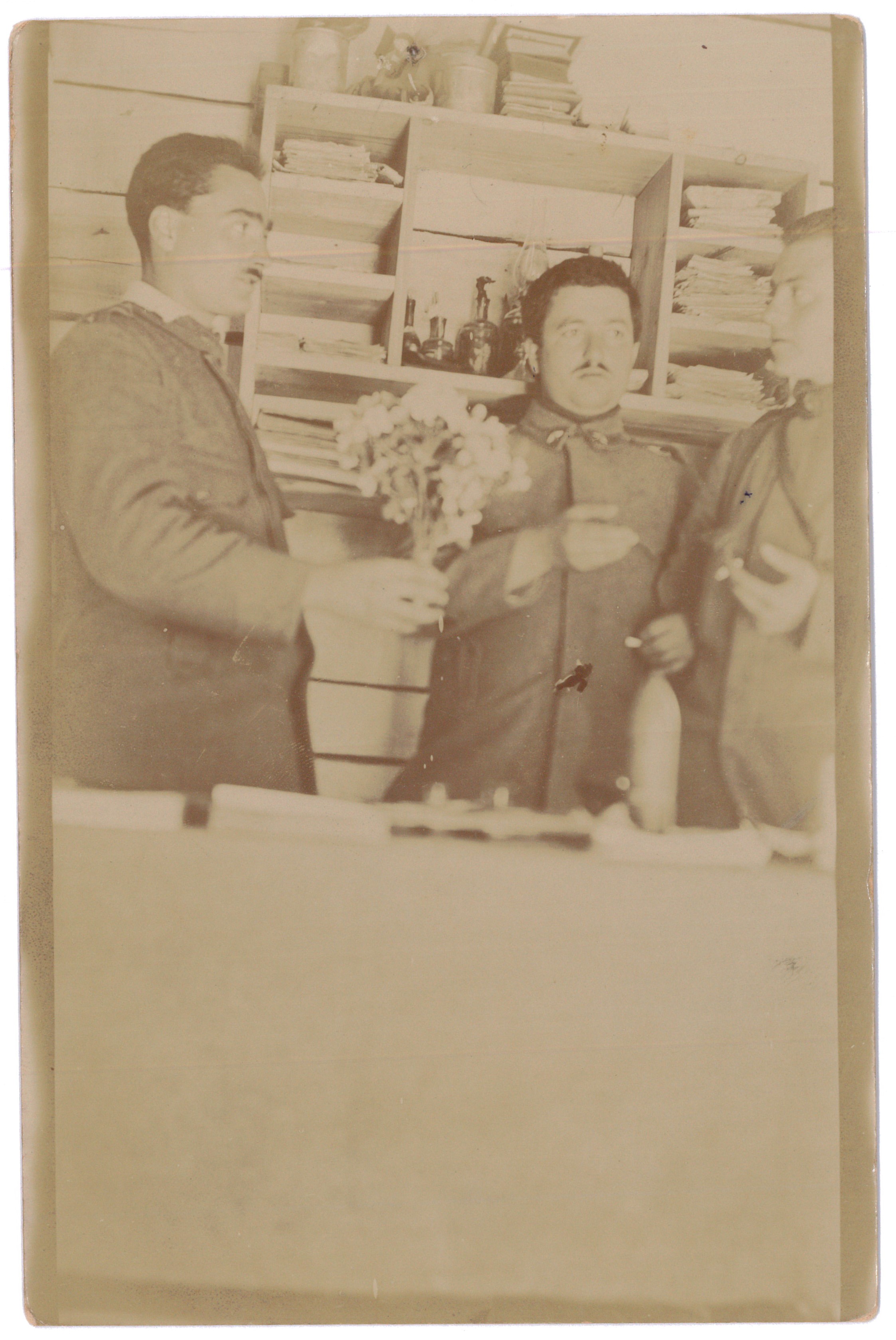 La sequenza di foto che pubblichiamo oggi, lo vede ad una scrivania, al lavoro insieme ad altri due commilitoni, forse proprio per le Salmerie. La qualità non è delle migliori forse perché scattate in interno. Sono tutte stampate in formato cartolina postale e quindi pronte per essere spedite.