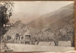 Oggi ci piace immaginarlo come uno dei soldati ritratti in questa fotografia che lui ha conservato (e chissà se non sia così). In attesa di salire su un mezzo che li porti finalmente a casa, una volta per tutte.
