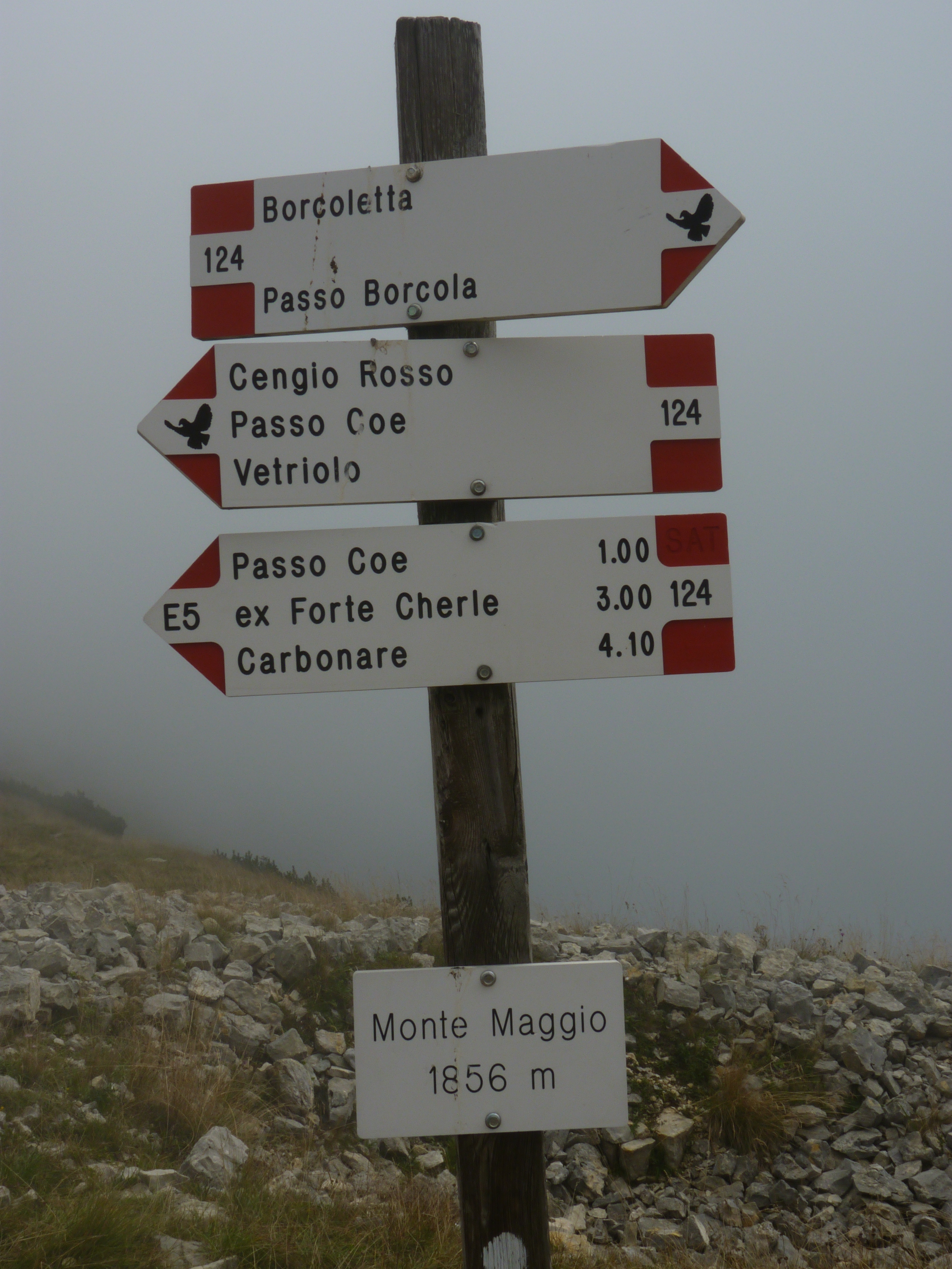 Parcheggiata la macchina a Passo Coe, abbiamo cominciato a salire seguendo il sentiero n. 124, che in questo tratto coincide col sentiero europeo E5.