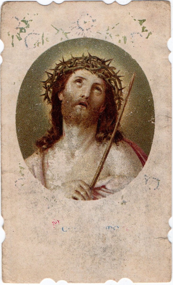Tra gli oggetti sacri conservati da nostro nonno insieme ai diari di guerra, abbiamo trovato un Santino un po’ particolare. L’aspetto è molto semplice, con l’immagine del Cristo “Ecce Homo”…