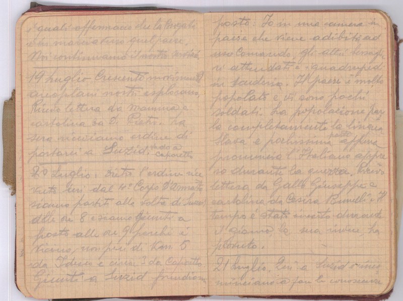 Sempre crescente è il movimento bellico. Ricevo cartolina da Giuseppe Dubini. Nella serata riceviamo ordine di spostarci da Suzid per andare a Crai.