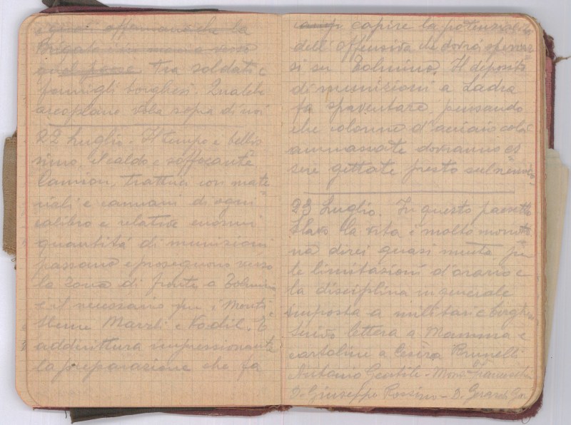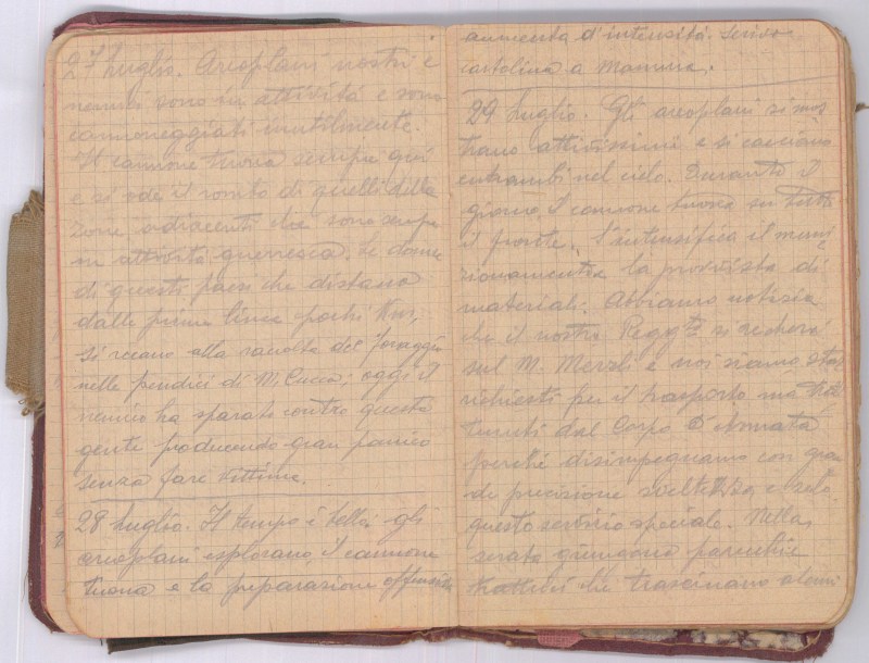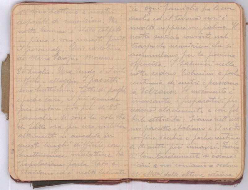 Il tempo è bello, gli areoplani esplorano, il cannone tuona e la preparazione offensiva aumenta d’intensità. Scrivo cartolina a mamma.
