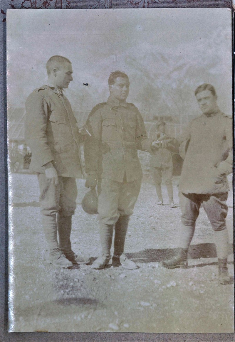 Sempre dall’album di famiglia, in una delle pagine dedicate alle fotografie ricordo della Grande Guerra conservate da Flavio. In primo piano un Tenente Colonnello molto probabilmente di Artiglieria (sul fregio…