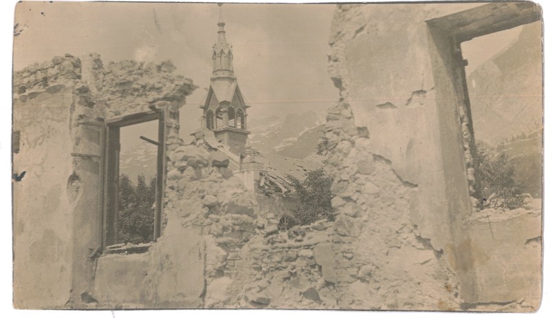 Alle spalle di un edificio evidentemente distrutto a cannonate, spunta il campanile di una chiesa anch’essa danneggiata dai bombardamenti. Sul retro della fotografia che pubblichiamo oggi, un semplice scritta che…