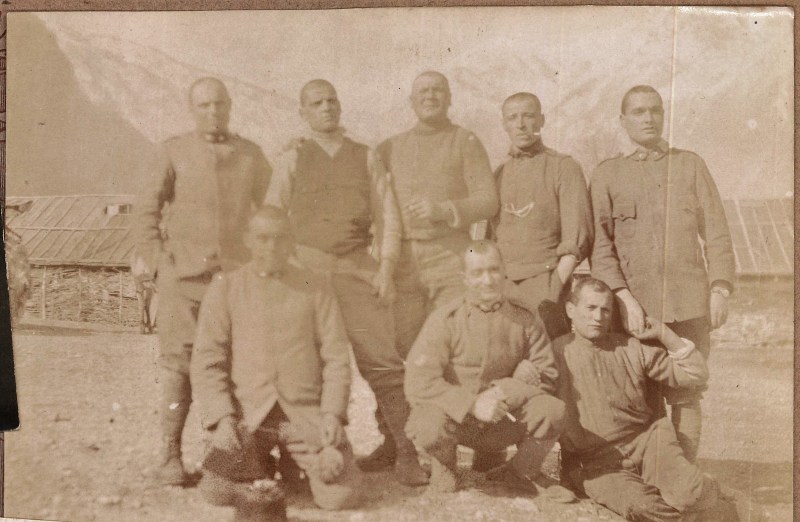 La fotografia che pubblichiamo oggi ritrae un gruppo di soldati a dir poco eterogeneo. Alcuni non portano neanche la giubba. Il soldato in piedi a sinistra e i due accosciati…