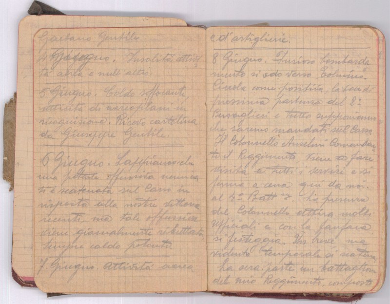 Caldo soffocante, attività di areoplani in ricognizione. Ricevo cartolina da Giuseppe Gentile.