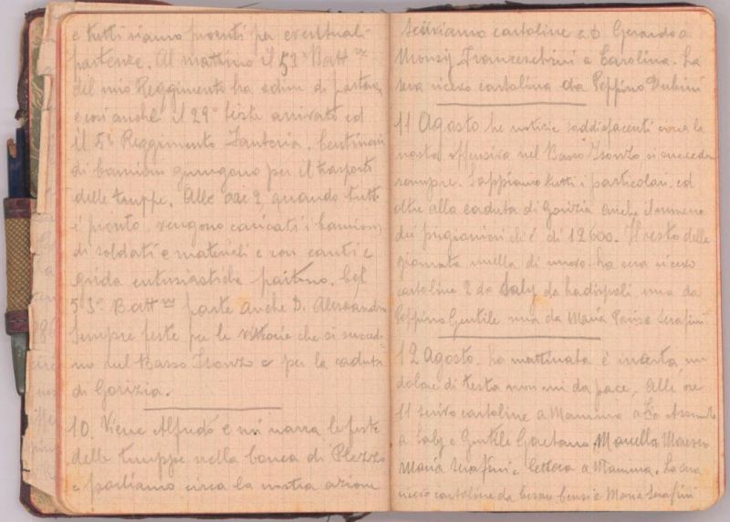 E’ un via vai di automobili con Generali e più ci fa convinti della prossima azione in questo fronte. Alle ore 12 scrivo cartolina a Mamma, Tuzi Concetto, Padre Lorenzo…