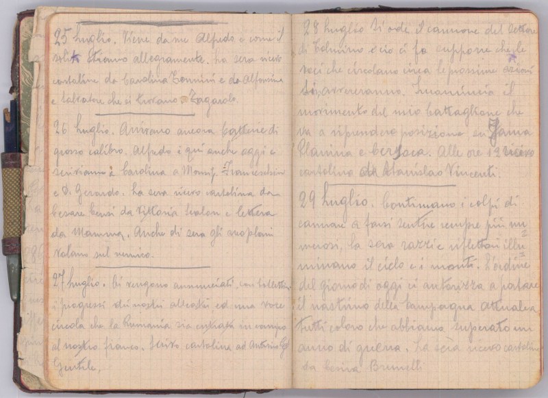Arrivano ancora batterie di grosso calibro. Alfredo è qui anche oggi e scriviamo a Carolina a Mons. Franceschini a D. Gerardo. La sera ricevo cartolina da Cesare Censi da Vittoria…