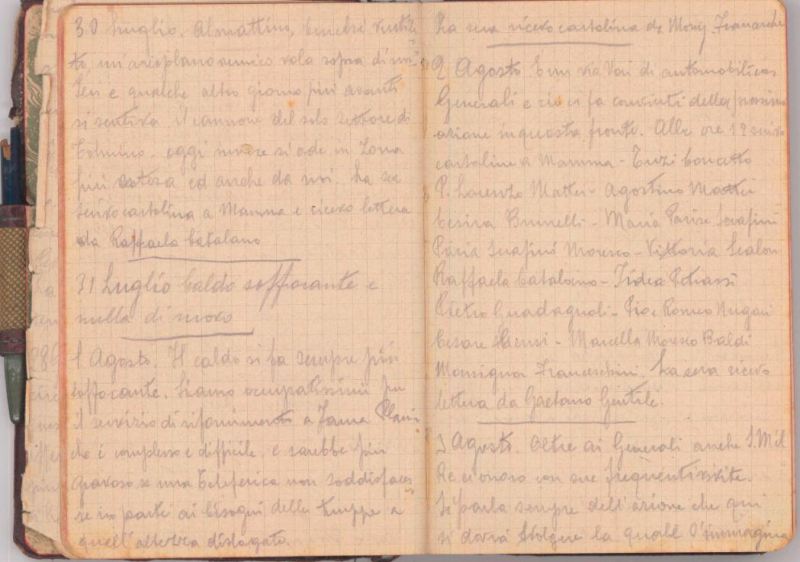 Il giorno s’inizia col bel tempo e di questo un aeroplano nemico ne approfitta per compiere pochi giri sopra di noi; dico pochi perché presto un nostro veicolo è apparso…