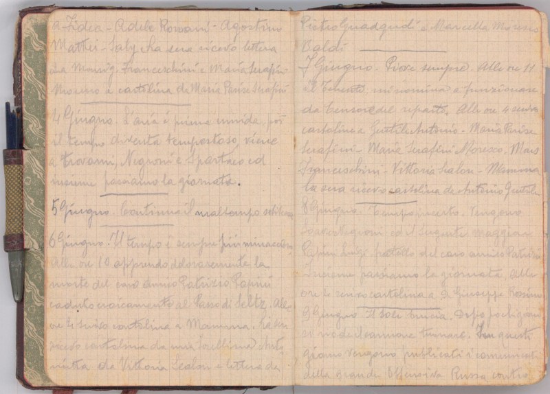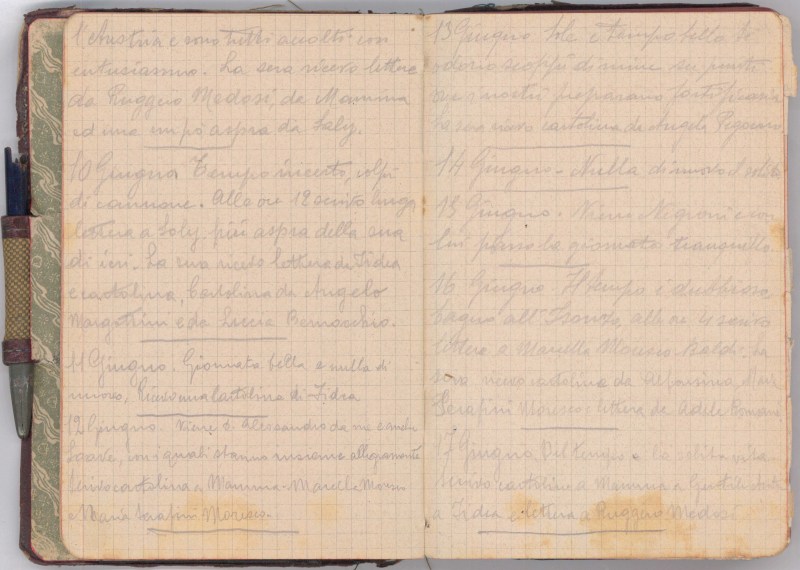 Piove sempre. Alle ore 11 il Tenente mi nomina a funzionare da Censore del reparto. Alle ore 4 scrivo cartoline a Gentile Antonio – Maria Parise Serafini – Maria Serafini…