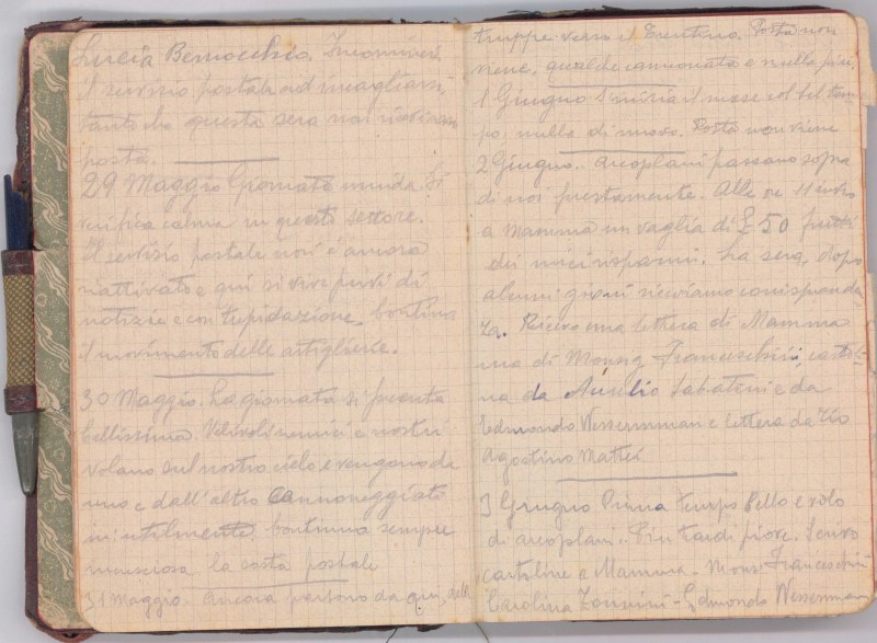 La giornata si presenta bellissima. Velivoli nemici e nostri volano sul nostro cielo e vengono da uno e dall’altro cannoneggiati inutilmente. Continua sempre incresciosa la sosta postale.