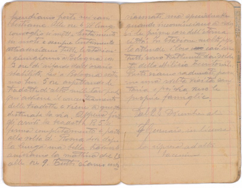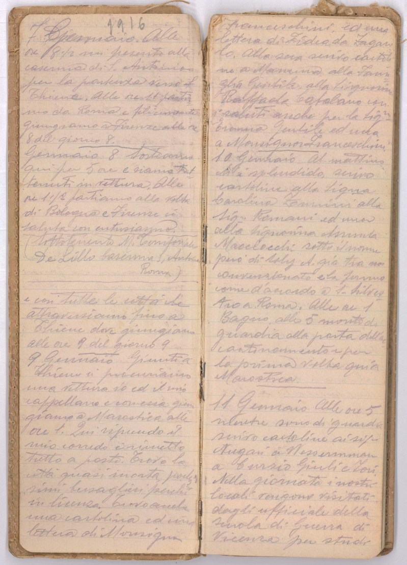 Alle ore 8 ½ mi presento alla caserma di S. Antonio per la partenza verso Thiene. Alle ore 11 partiamo da Roma e felicemente giungiamo a Firenze alle ore 8…