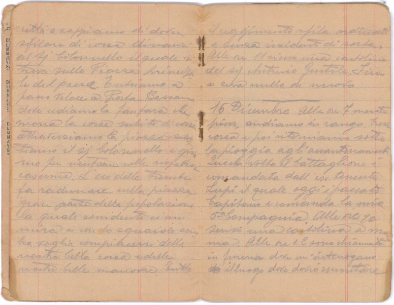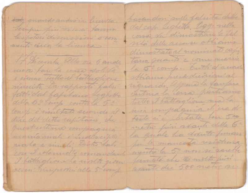 Alle ore 6 andiamo a fare la corsa solita e siamo tutto il battaglione riunito. Da rapporti falsi fatti dal Capitano Seghetto della 6° Comp. Contro la 5° Comp. È…