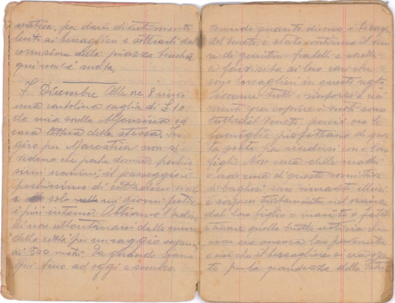 Alle ore 8 ricevo una cartolina vaglia di £ 10 da mia sorella Alfonsina ed una lettera della stessa. In giro per Marostica non si vedono che poche donne, pochissimi…