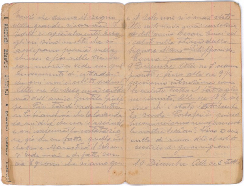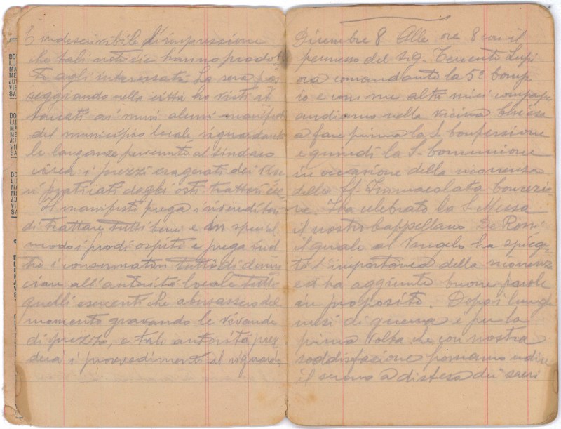 Alle ore 8 con il permesso del sig. Tenente Lupi ora comandante la 5° compagnia e con me altri miei compagni andiamo nella vicina chiesa a fare prima la S.…