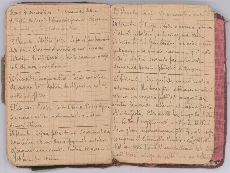 Il tempo è bello e deciso a favorire il giubilo popolare per la ricorrenza della nascita di N. S. Gesù Cristo. Io e miei amici festeggiamo la grande ricorrenza, qui…