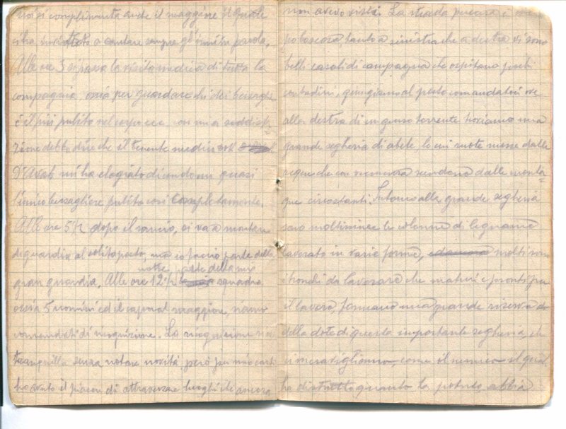 dopo rientrato all’accampamento dal posto di segnalazione, riposo fino alle ore 11, poi vado, perché sono libero, al vicino Cismone, nelle di cui gelide acque lavo qualche pezza di biancheria…