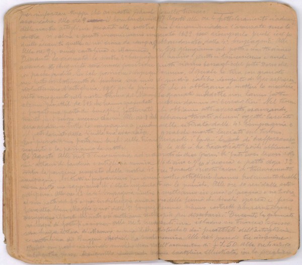 Alle ore 4 ½ appena consumato rancio e caffè ci armiamo e siamo pronti per rinforzare truppe che ai nostri fianchi avanzano. Alle ore 9 il bombardamento delle nostre artiglierie…