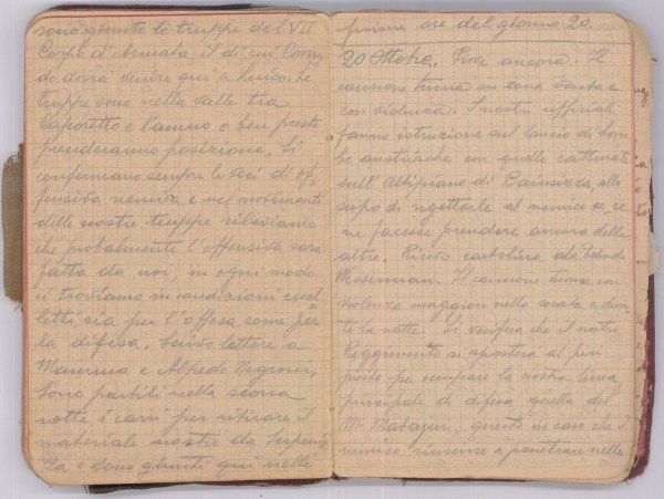 Il tempo è sempre buono. Ricevo lettera da Saly e cartolina da Tonina Crainik. Nel pomeriggio viene l’ordine di partire pel Plotone Zappatori del 4° Batt.ne Bersaglieri i quali si…