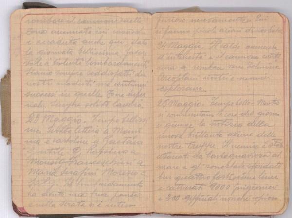 Tempo bello. Mentre si commentano le cose del giorno ci giunge la notizia della nuova brillante azione delle nostre truppe. Il nemico è stato attaccato da Castagnevizza al mare e…