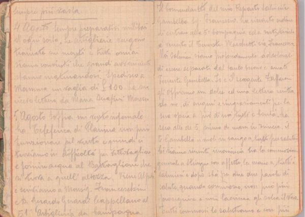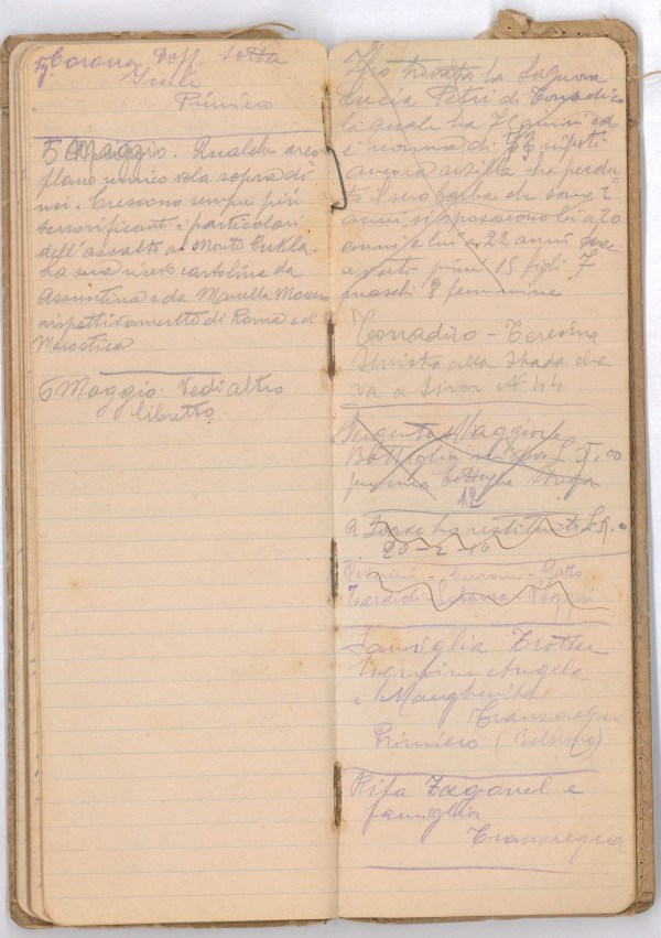 Qualche aeroplano nemico vola sopra di noi. Crescono sempre più terrificanti i particolari dell’assalto al Monte Cukla. La sera ricevo cartoline da Assuntina e da Marcella Moresco rispettivamente di Roma…