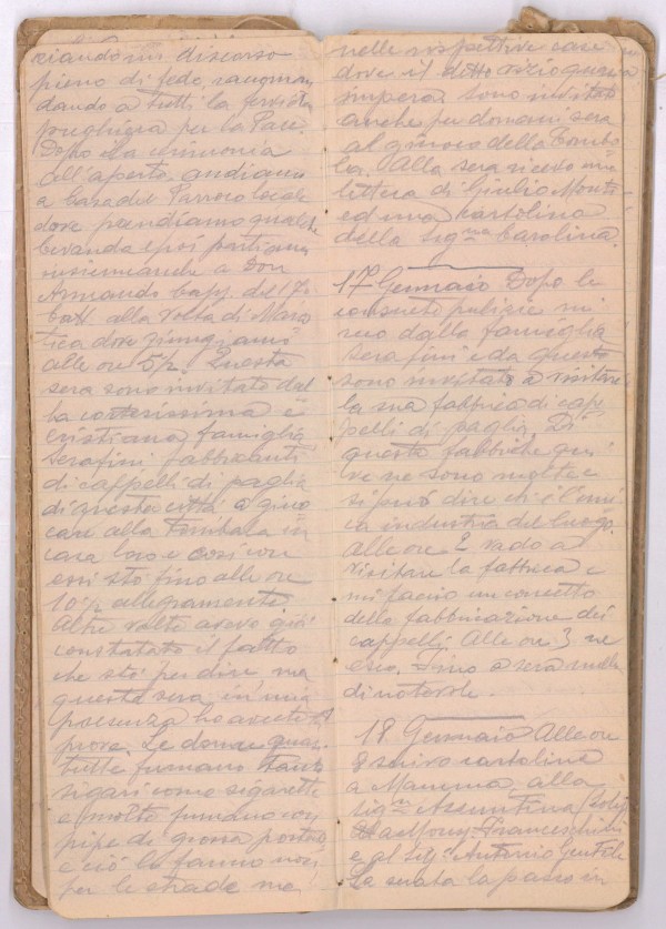 Dopo le consuete pulizie mi reco dalla famiglia Serafini e da questa sono invitato a visitare la sua fabbrica di cappelli di paglia. Di questa fabbriche qui ve ne sono…