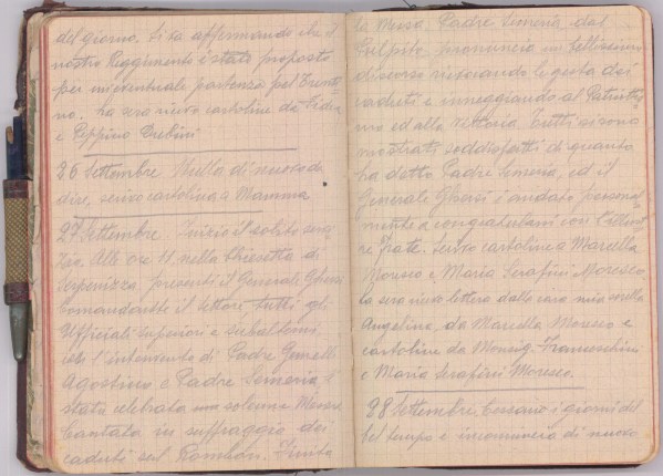 Inizio il solito servizio. Alle ore 11 nella Chiesetta di Serpenizza è presente il Generale Ghersi Comandante il settore, tutti gli ufficiali e subalterni, con l’intervento di Padre Gemelli Agostino…