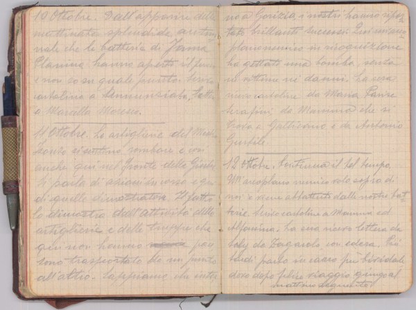 Come il solito nel bel cielo azzurro, ma un po’ ventilato appaiono areoplani nemici e nostri. Continua lo stesso movimento. Sappiamo che presso Tolmino sono stati catturati 500 prigionieri nemici…